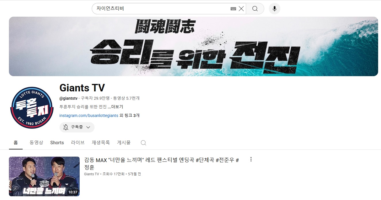 저 뿐 아니라 저희 지인, 가족 모두 자이언츠 티비 구독 완료!!