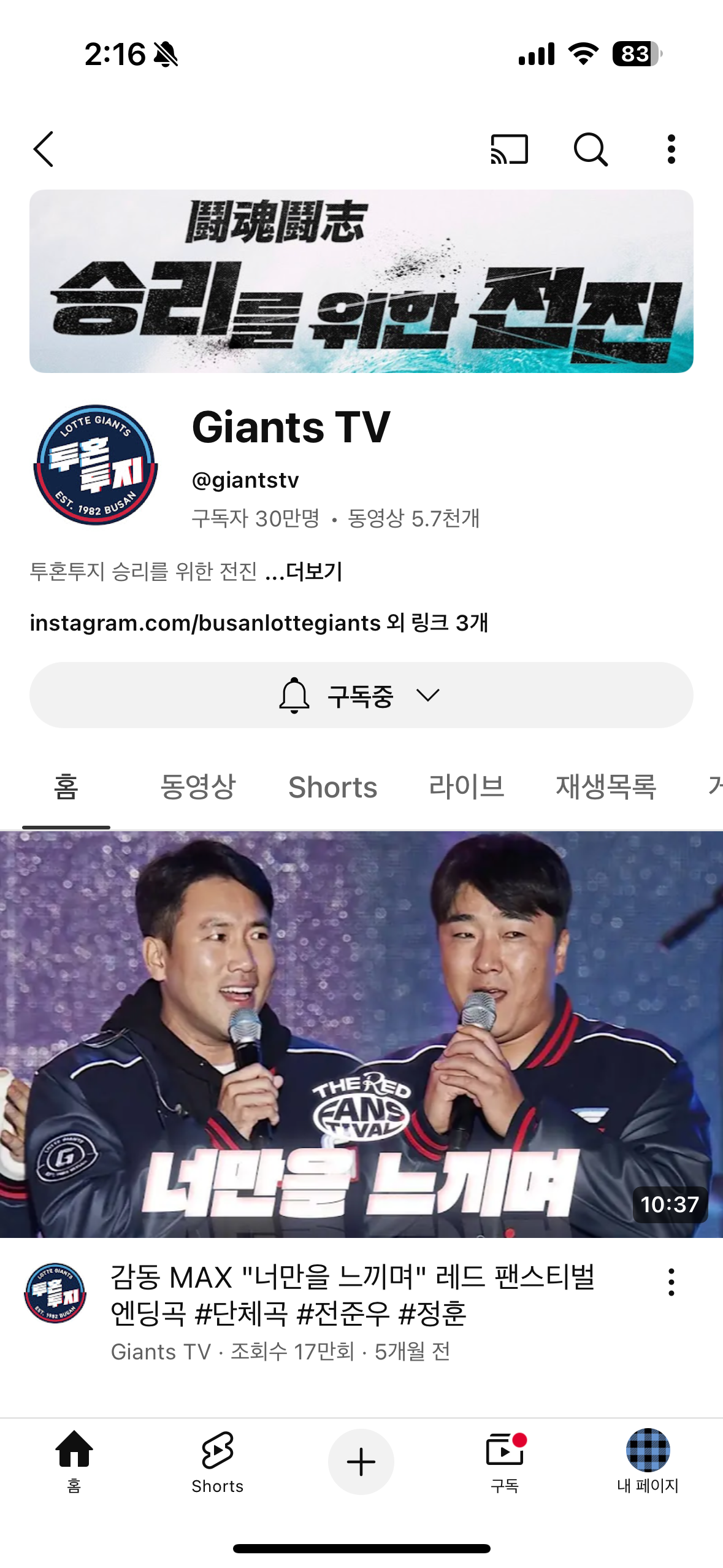 Giants TV 구독 인증합니다